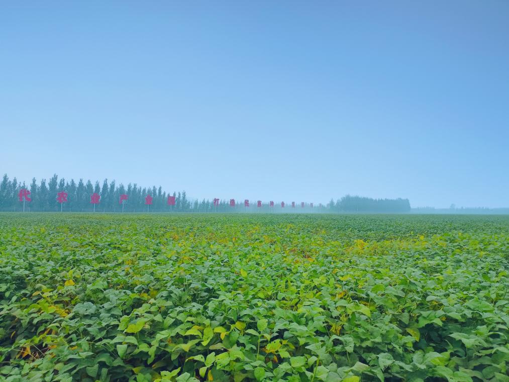 在山東省濟寧市嘉祥縣國家現代農業產業園大豆原種繁育基地,一片片大豆長勢喜人。(受訪者供圖)