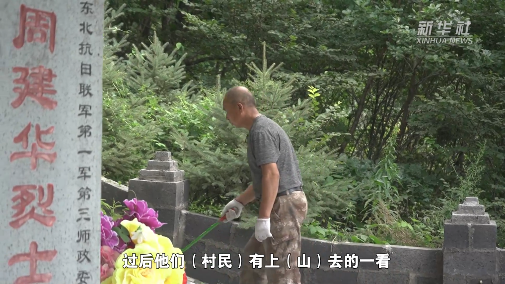 在遼寧省開原市李家臺鎮西南溝村砬子山,69歲的高顯文像往常一樣,提著水桶、拿著軟布,踏上通往烈士墓的石階。