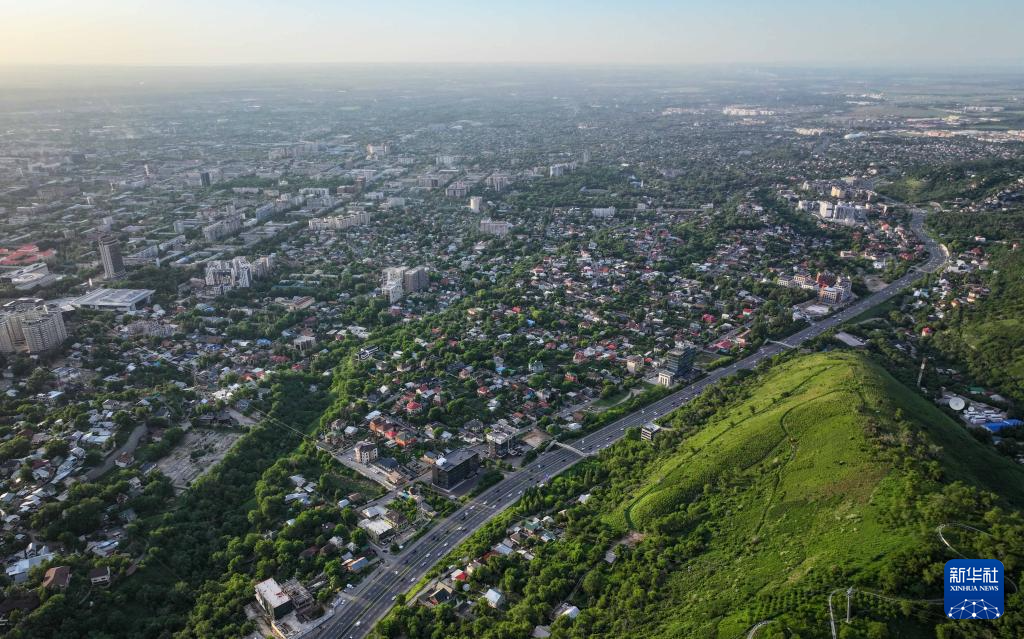 這是5月13日拍攝的哈薩克斯坦阿拉木圖市區風光(無人機照片)。新華社記者 李任滋 攝