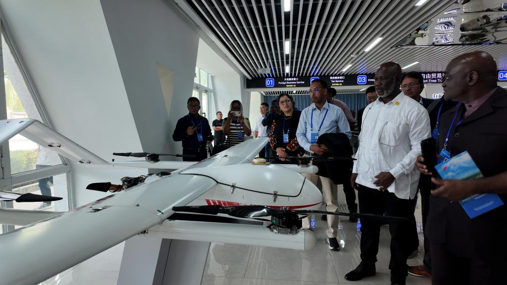 9月13日,外國議員在中國(新疆)自由貿易試驗區喀什片區展廳低空經濟展區參觀。 新華社記者 王澤宇 攝