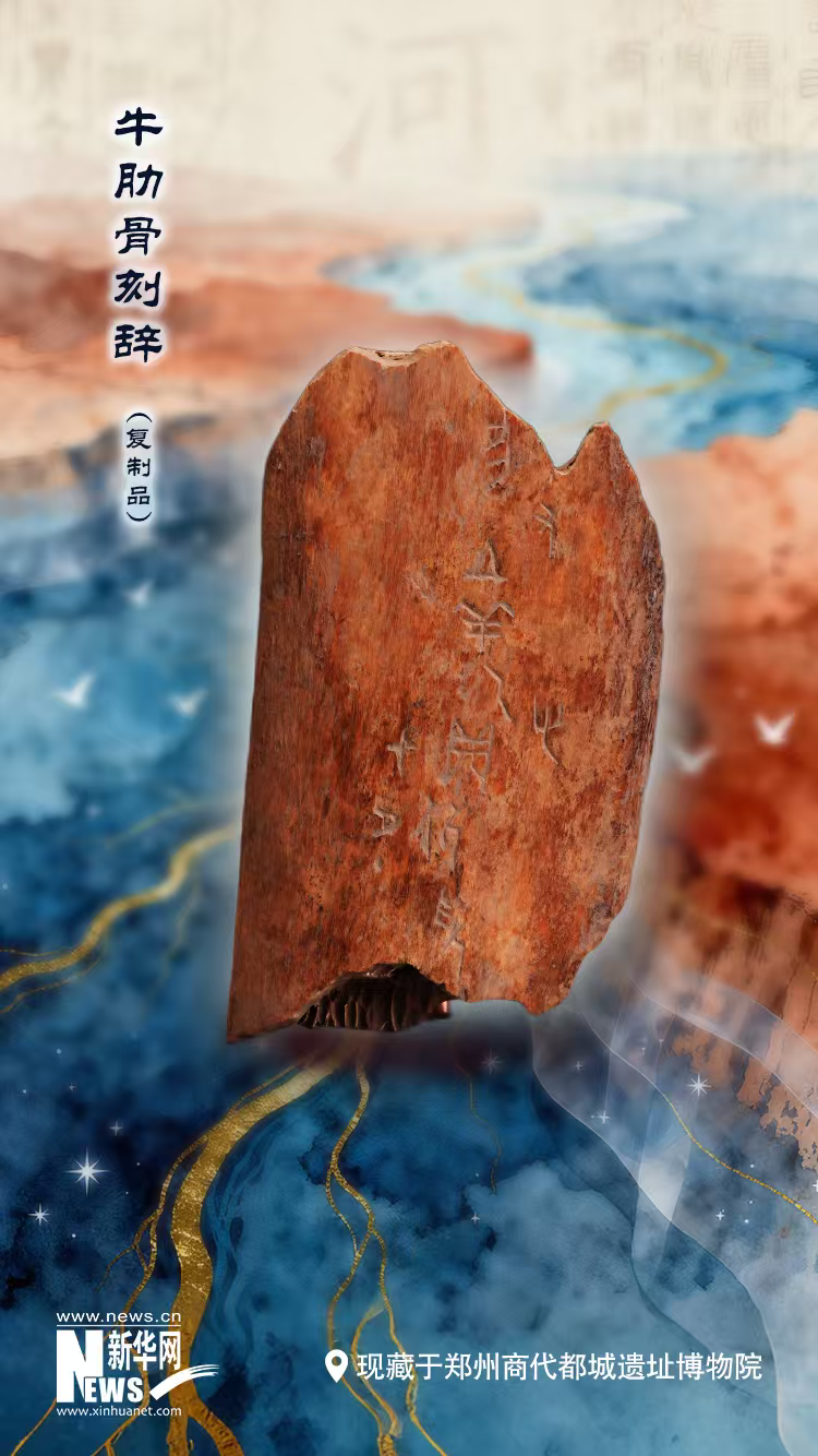 (牛肋骨刻辭(復制品) 現藏于鄭州商代都城遺址博物院)