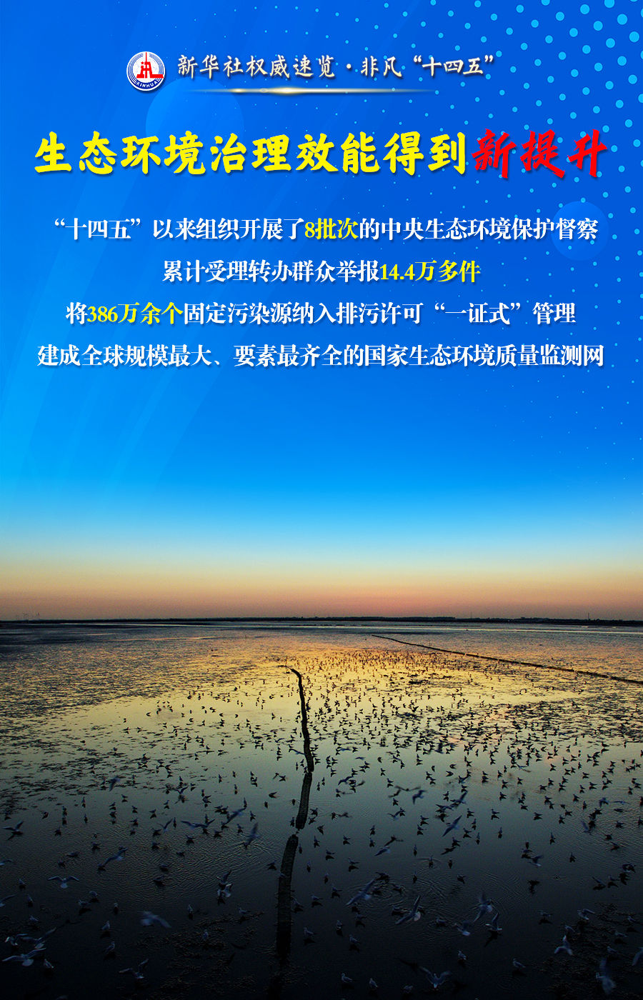 “十四五”時期,我國生態文明建設和生態環境保護工作取得重大成效。19日舉行的“高質量完成‘十四五’規劃”發布會上,生態環境部部長黃潤秋用“五個新”概括了“美麗中國”建設取得的新進展、新成就。跟隨海報,一起了解。