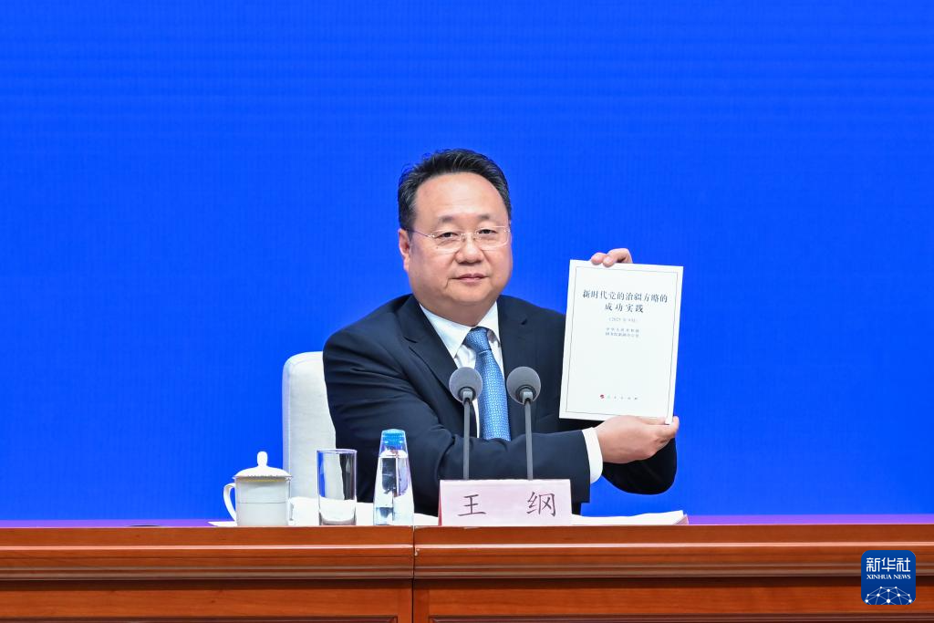 9月19日,國務院新聞辦公室在北京舉行新聞發布會,發布《新時代黨的治疆方略的成功實踐》白皮書,中央宣傳部副部長王綱,新疆維吾爾自治區黨委副書記、自治區主席艾爾肯·吐尼亞孜,新疆維吾爾自治區黨委常委、自治區常務副主席陳偉俊,新疆維吾爾自治區黨委常委、宣傳部部長王建新出席,介紹白皮書有關情況并答記者問。這是王綱展示《新時代黨的治疆方略的成功實踐》白皮書。新華社記者 李鑫 攝
