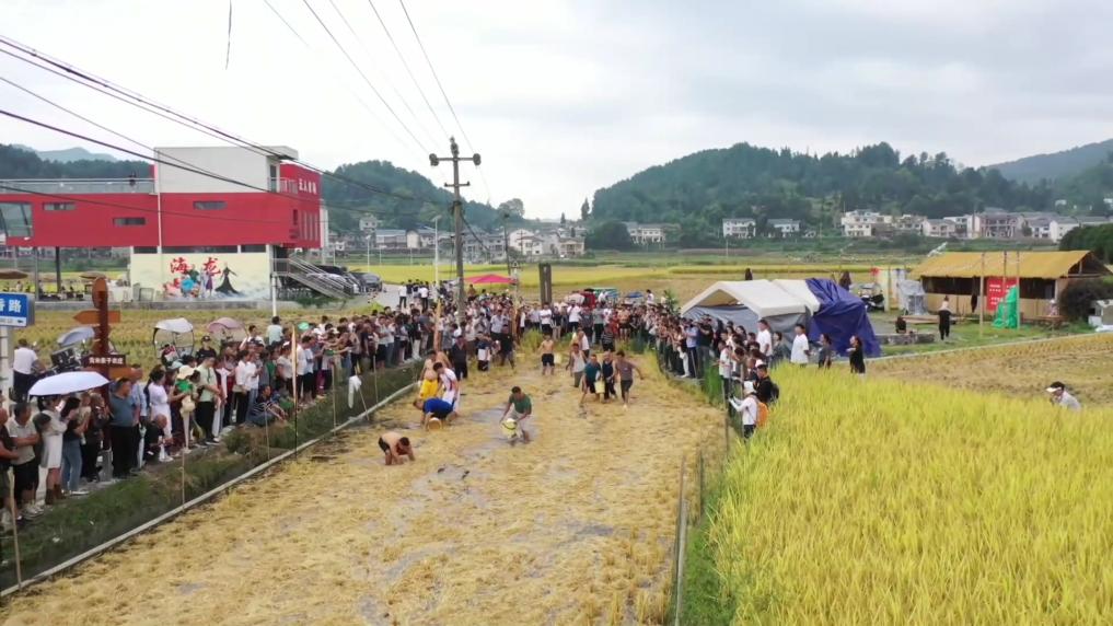 近日,貴州省遵義市2025農民豐收節系列活動在遵義市紅花崗區海龍鎮貢米村舉行。貢米村稻浪翻滾,村民們正忙著收割稻谷,一派豐收景象?;顒釉诰实牡咎镂乃噮R演中拉開帷幕,稻田拔河、扁擔接力等特色農事項目比拼則將現場氣氛推向高潮。