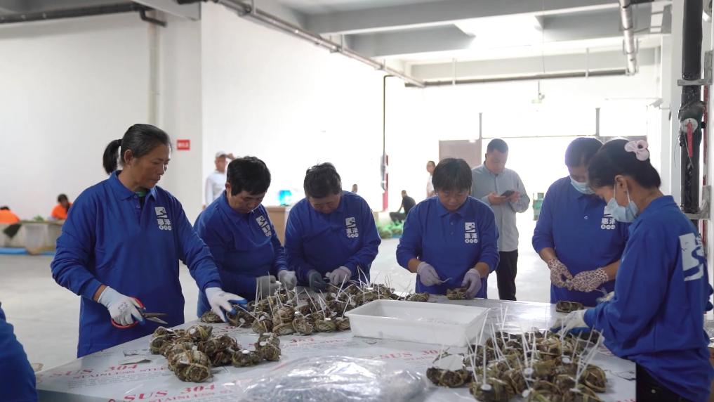 一只只鮮活的大閘蟹,經過嚴格的人工篩選、抽檢、捆綁和包裝,依托冷鏈物流,24小時內即可從黃河口直達上海、北京、廣東等地消費者的餐桌。