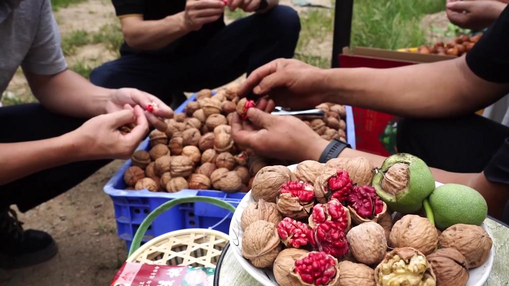 在商洛市洛南縣景村鎮,萬畝紅仁核桃樹上掛滿了果子,村民用竹竿敲打核桃墜地的簌簌響聲,成了山林間最動聽的“豐收曲”。剛剛采摘下來的新鮮紅仁核桃被及時運往附近加工廠進行清洗、篩選、包裝,準備發往全國各地。