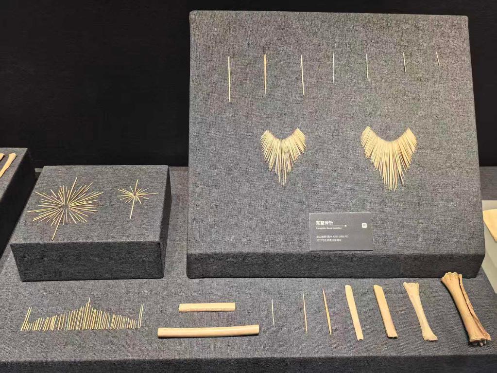 石峁博物館珍藏的骨針。新華社記者張京品 攝