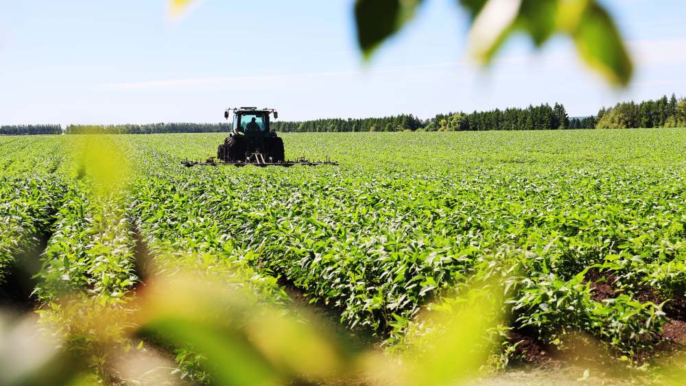 在北大荒集團黑龍江紅星農場第一管理區有機大豆田里,搭載北斗導航系統的大馬力機車開展有機大豆二次中耕作業(2025年7月7日攝)。新華社發(侯越攝)