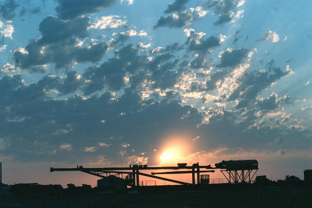 朝霞中的北疆鐵路建設工地(1990年9月5日攝)