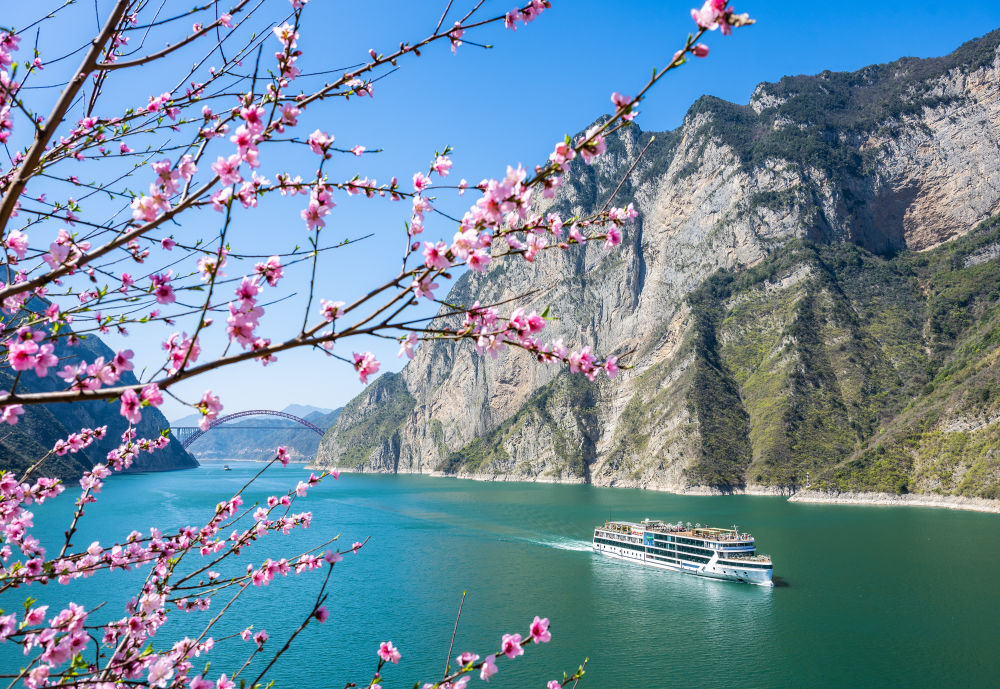 2025年3月25日,船舶行駛在長江三峽湖北省宜昌市秭歸縣兵書寶劍峽水域。新華社發(鄭家裕 攝)
