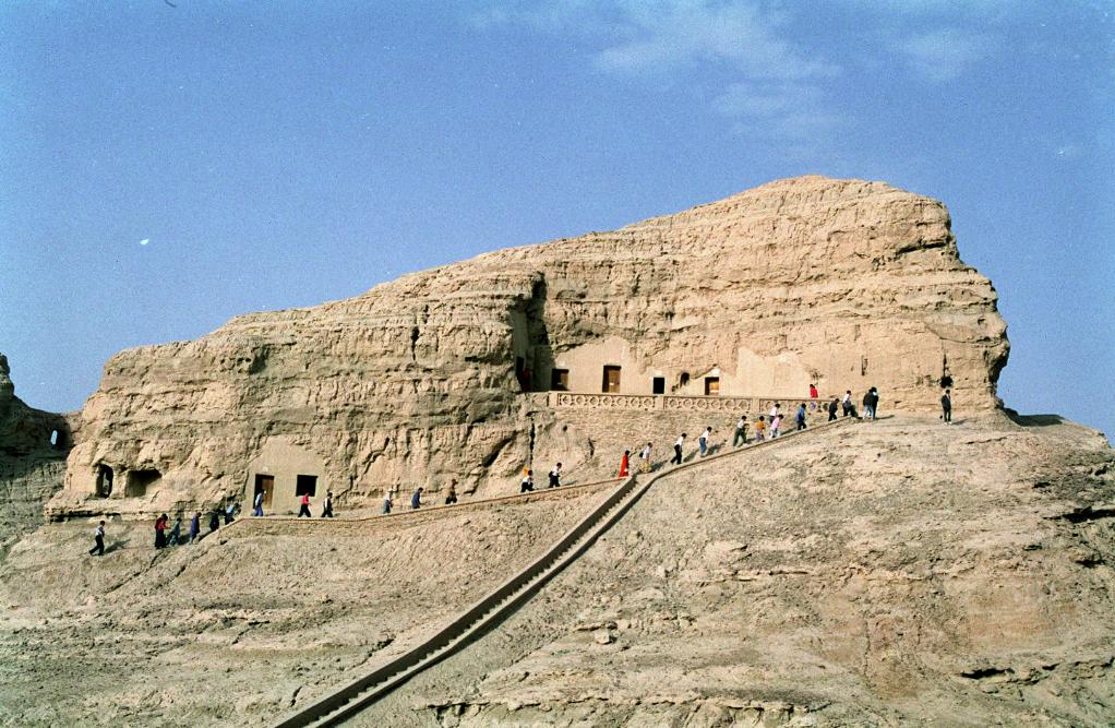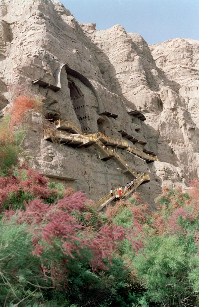 游客在克孜爾千佛洞參觀(1994年12月6日發)。