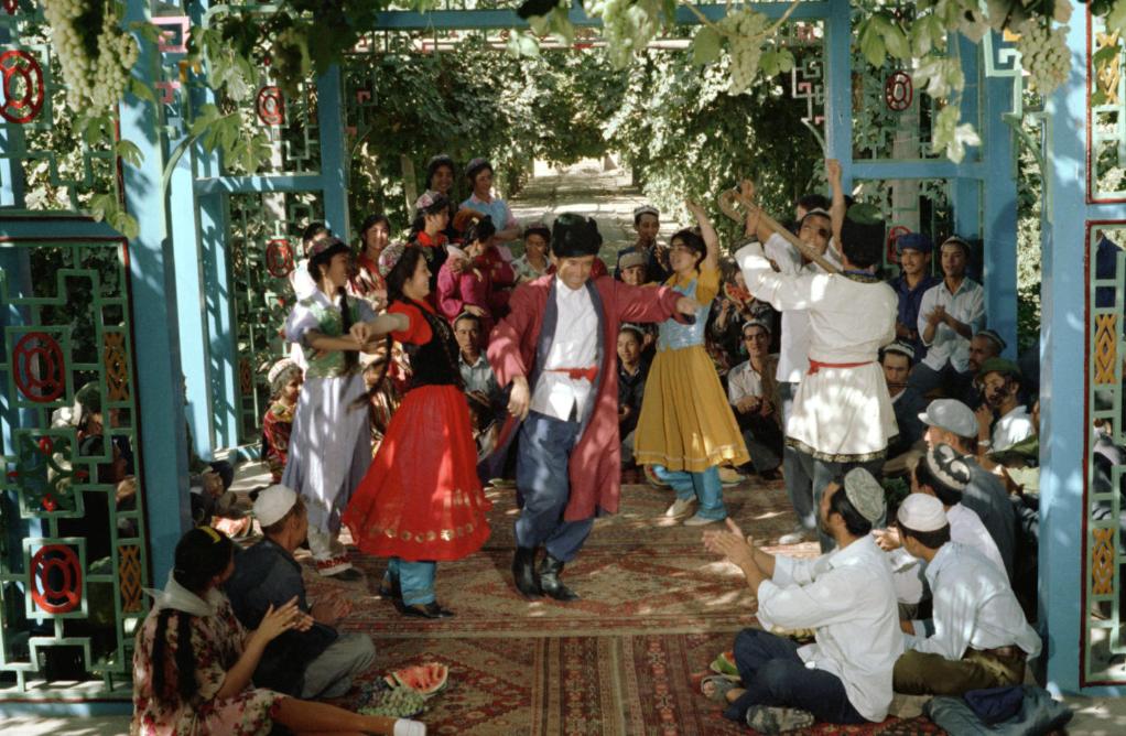 秋收之后,能歌善舞的新疆農民們在葡萄園內婆娑起舞(1981年4月20日發)。