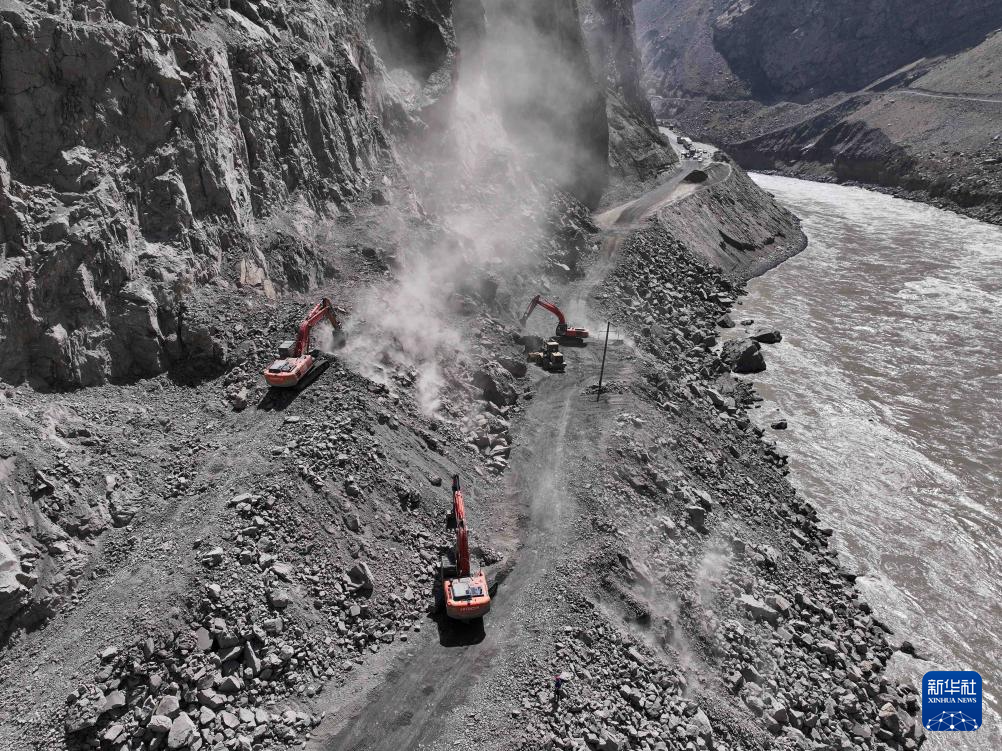 沿途記者看見,大部分山體石質松脆,幾乎沒有任何植被,坍塌是家常便飯,在上面修路可謂難上加難。當地人常說,老天爺不賞飯吃。但中國建設者們偏不信這個邪。