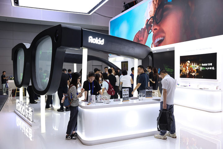 2025年9月25日,觀眾在第四屆全球數字貿易博覽會人工智能展區參觀智能眼鏡設備。新華社記者 江漢 攝