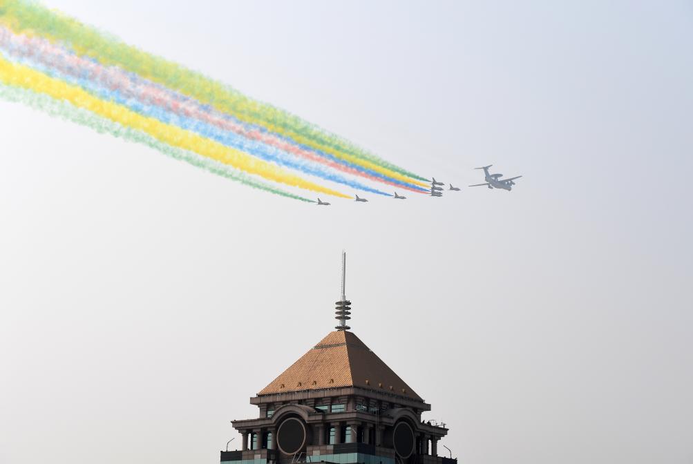 2019年10月1日,慶祝中華人民共和國成立70周年大會在北京天安門廣場隆重舉行。這是領隊機梯隊。