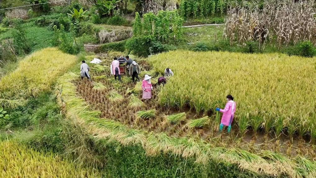 陜西省嵐皋縣官元鎮600余畝水稻開鐮收割。連日來,頻繁的降雨天氣對水稻收割造成不利影響,當地政府積極組織農戶利用降雨間歇,爭分奪秒搶收成熟水稻。