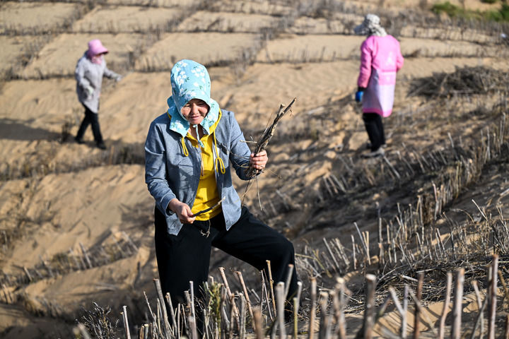 治理沙漠不僅重塑了生態,更激活了沙區經濟。通過推行“以工代賑”“先建后補”等模式,農牧民廣泛參與生態治理、光伏板清洗、后期管護等工作,帶動沙區38萬農牧民就近就業。2024年,全市林草產業總產值達75億元,已建成碳匯林285萬畝。