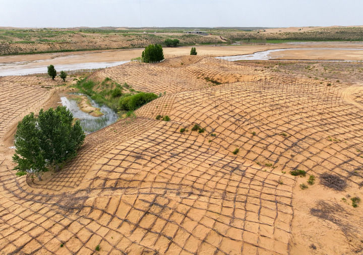 在沙漠腹地,沙區干部群眾通過修建穿沙公路、開展“十大孔兌”生態治理,將寸草不生、飛鳥難越的浩瀚沙海分割成一個個治理單元。