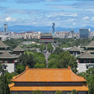 在景山上拍攝的北京中軸線風光。新華社記者 李鑫 攝