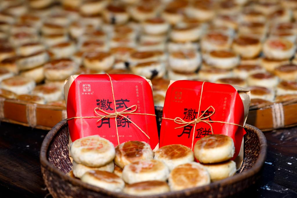 這是制餅手藝人程貴生和家人制作好的“徽式麻仁月餅”(9月25日攝)。新華社發(施亞磊 攝)