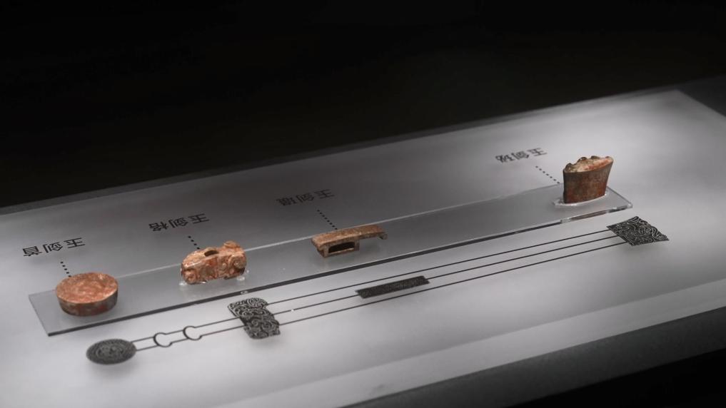趙眜墓出土的一套玉劍飾。視頻截圖