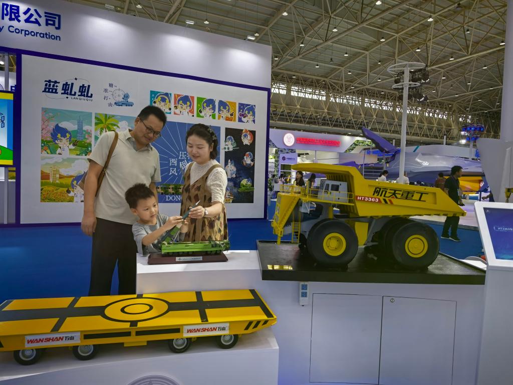 博覽會上,殲-20、福建艦、長征五號火箭等大家聽過卻難以近距離接觸的裝備,以可觸、可感、可互動的方式,來到了尋常百姓身邊。拿著剛買的艦載戰斗機模型,6歲的艾辰宇細細觀察著戰機的構造,興奮地說:“我準備把它放在書桌上,每天都看得到?!?/p>
