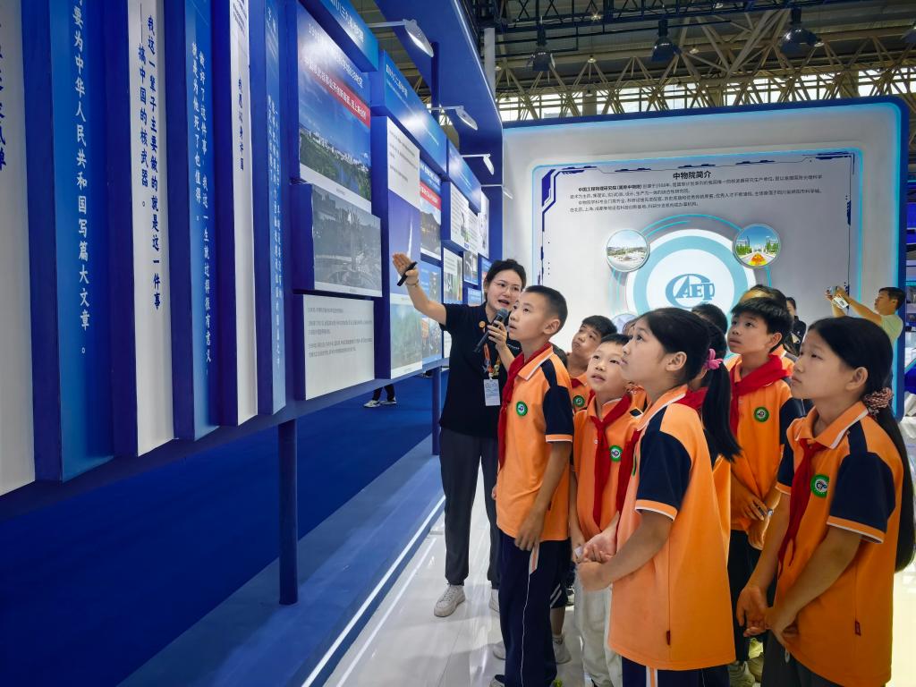 展臺工作人員向學生介紹國防軍工知識。新華社記者 侯文坤 攝