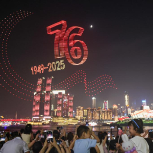 這是10月1日晚在重慶市南岸區拍攝的無人機燈光秀。新華社記者 黃偉 攝