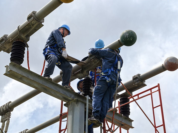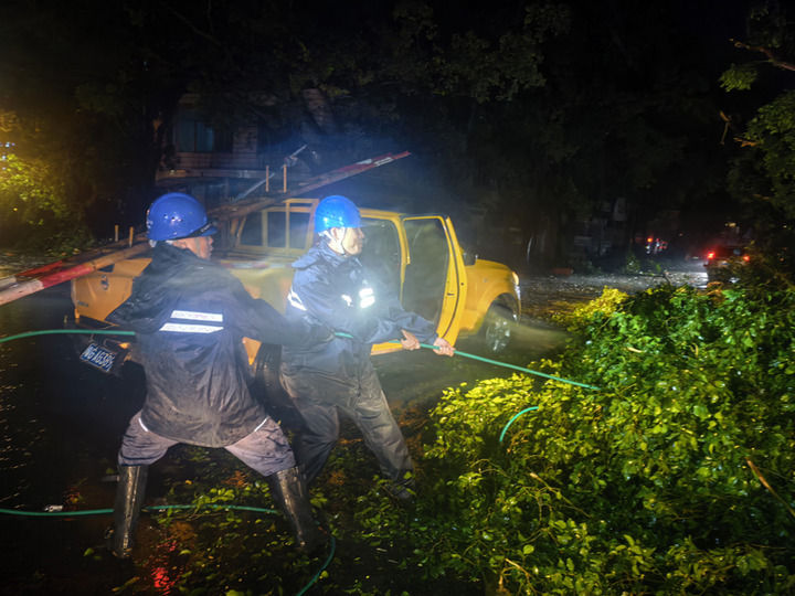 工作人員搶修電力。新華網發(陳文裕 攝)