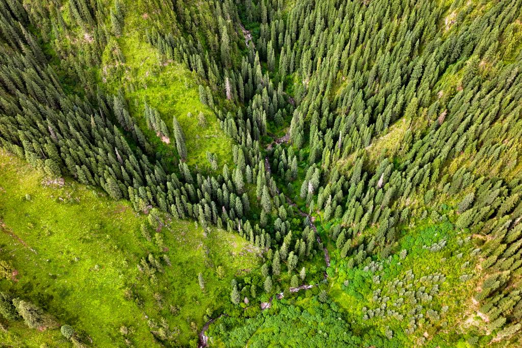 秋日清晨,青海省果洛藏族自治州班瑪縣境內的瑪可河林區空氣清冽,墨青色的樹木被晨霧籠罩在瑪可河兩側的群山上。沿著河谷一路向南,綠水氤氳,灌木蔥郁,不時跳出巖羊等野生動物,為寂靜的山林增添不少生氣。