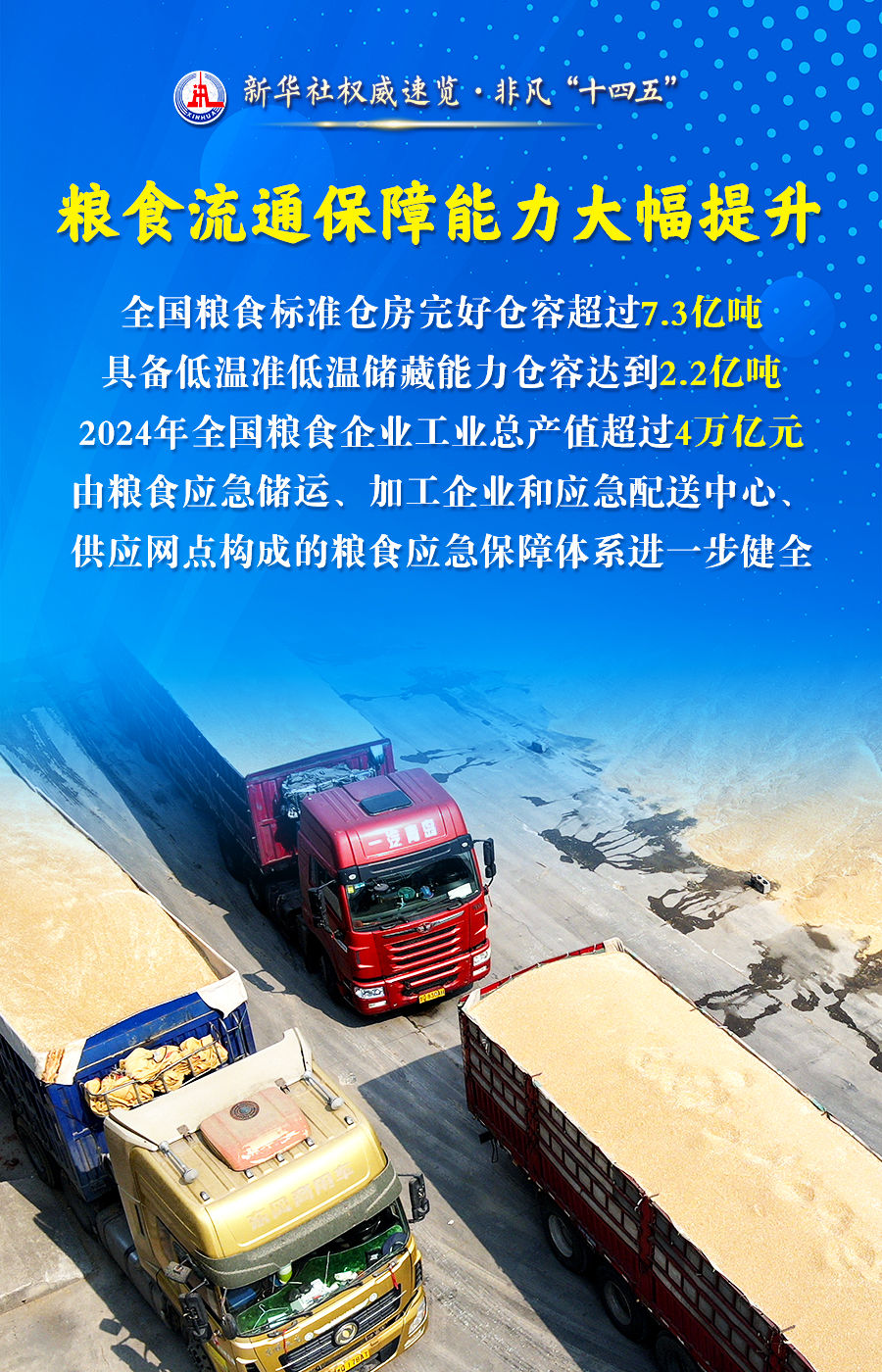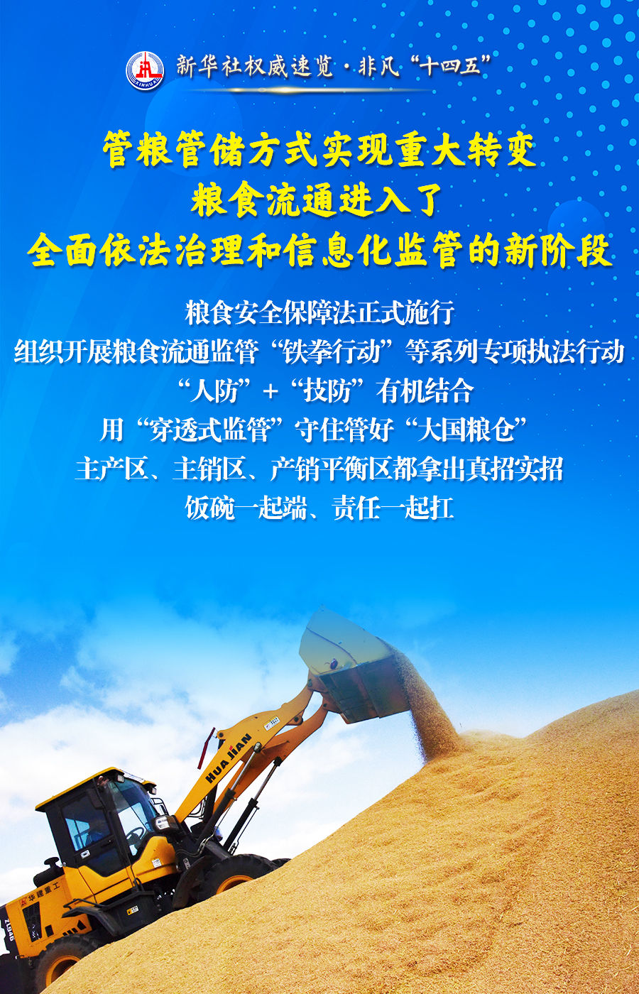 悠悠萬事,吃飯為大?!笆奈濉睍r期,各地區各有關部門積極踐行新糧食安全觀,大力實施國家糧食安全戰略,扎實推進糧食產購儲加銷協同保障,糧食流通改革發展各項任務進展符合預期,國家糧食安全得到有效保障,為經濟社會高質量發展提供了有力支撐。跟隨海報,一起了解。