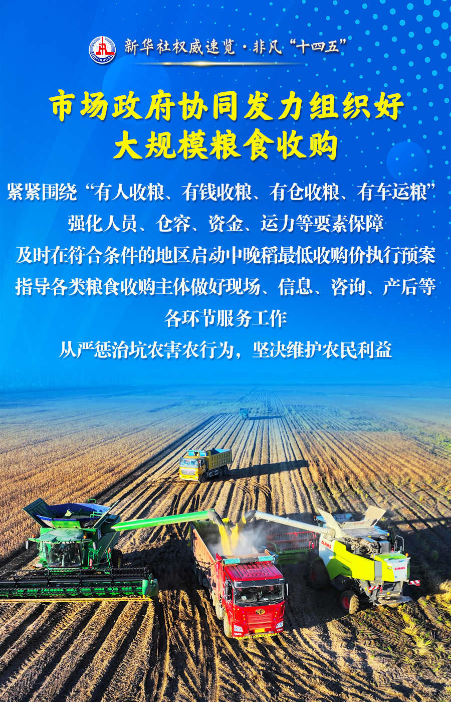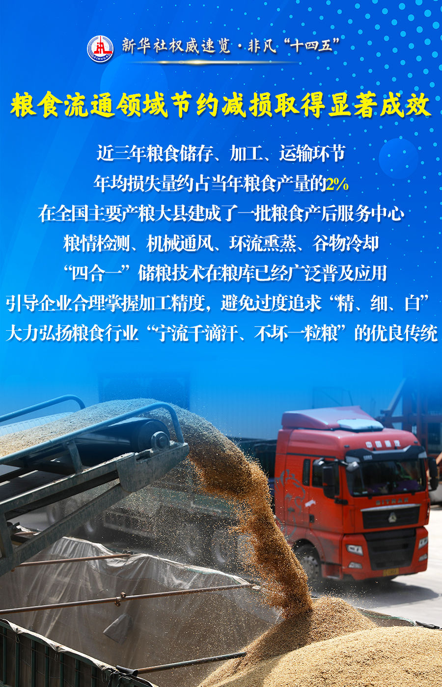 糧食流通領域節約減損取得顯著成效,從“吃得飽”向“吃得好”“吃得營養健康”轉變,持續增強糧食流通監管……14日舉行的“高質量完成‘十四五’規劃”發布會上,國家發展改革委黨組成員、國家糧食和儲備局局長劉煥鑫說,“十四五”時期,糧食流通改革發展各項任務進展符合預期,為經濟社會高質量發展提供了有力支撐。跟隨海報,一起了解。