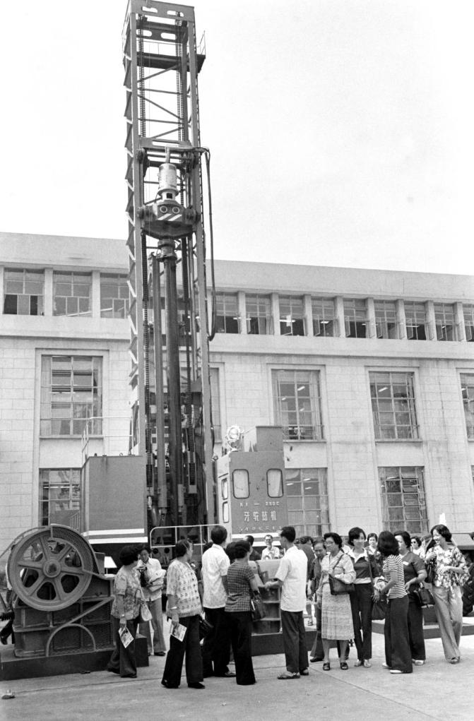 1978年春季中國出口商品交易會4月15日在廣州開幕。這是江西鑄鍛廠制造的大型礦山機械KY2500牙輪鉆機在廣交會展出。