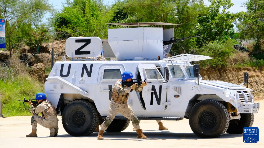 陸軍某旅“劉老莊連”遠赴南蘇丹執行國際維和任務,官兵進行班組戰斗動作課目訓練(2023年5月20日攝)。新華社發(任郭洋 攝)