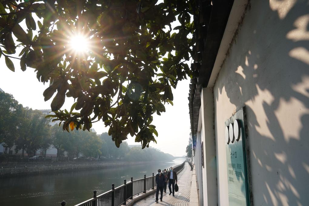 2023年1月6日,市民在蘇州市姑蘇區二郎巷健身步道散步。新華社記者 季春鵬 攝