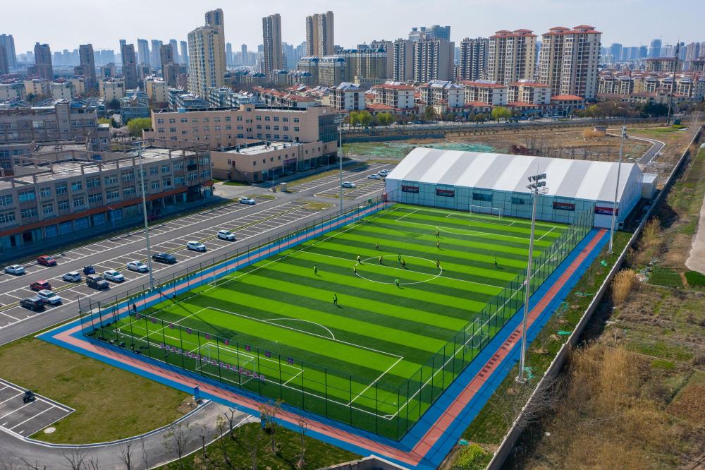這是2021年3月17日拍攝的江蘇省淮安市國聯西壩體育公園(無人機拍攝)。新華社記者 李博 攝