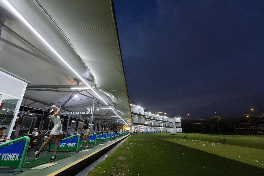 2023年7月18日,高爾夫球愛好者在成都新陣地高爾夫練習場練習。新華社記者 江宏景 攝