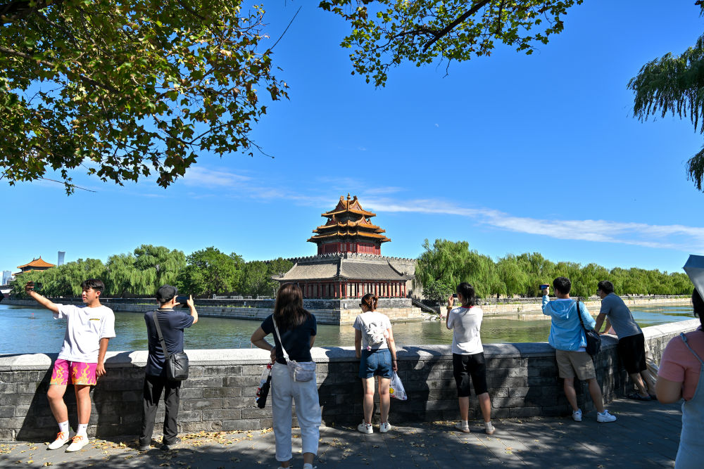 人們在拍攝北京故宮角樓(2025年8月12日攝)。新華社記者 李鑫 攝