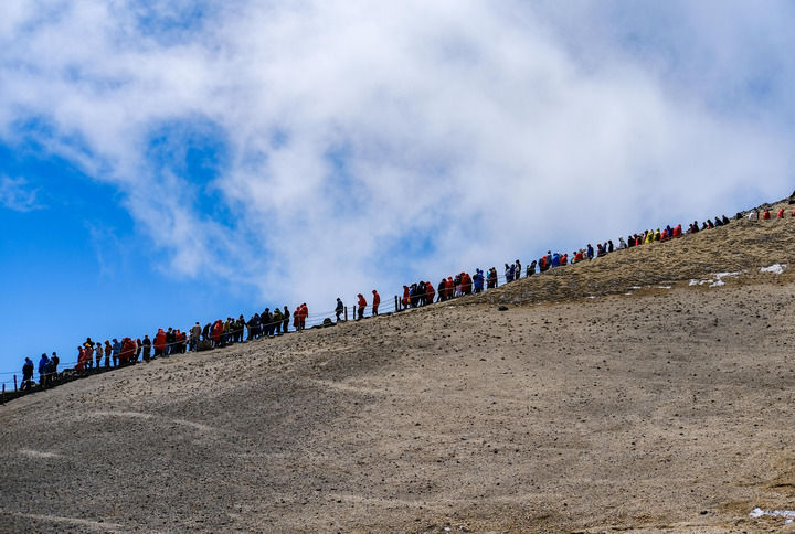 2024年5月24日,游客登上長白山主峰觀賞天池。新華社記者 顏麟蘊 攝