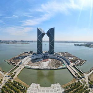 這是2025年3月19日拍攝的位于上海浦東新區的自貿區臨港新片區滴水湖畔的西島中銀金融中心項目建設工地(無人機照片)。新華社記者方喆攝