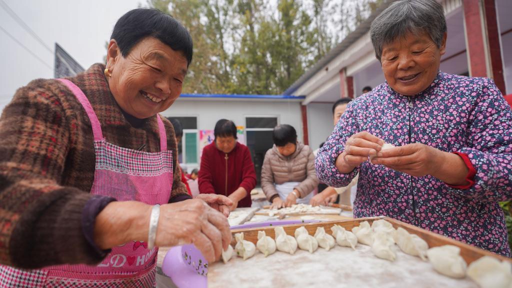 10月28日,山東省鄒平市臺子鎮城關村片區的老人聚在一起包水餃,喜迎重陽節。新華社發(董乃德 攝)
