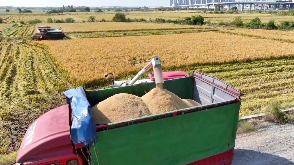 南昌青山湖區中晚稻迎來集中收割。