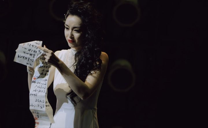 相比于傳統的戲劇風格,此版《哈姆雷特》全劇僅有四位演員,一人分飾N角,從而將不同的靈魂藏在同一副面孔下。在哈姆雷特與父親的亡魂對話時,演員通過臉部90度的高強度扭轉,瞬間完成角色切換,以此呈現哈姆雷特內心的劇烈沖突,而機械感十足的表演也似乎暗示著哈姆雷特試圖反抗世俗與身份的雙重禁錮。