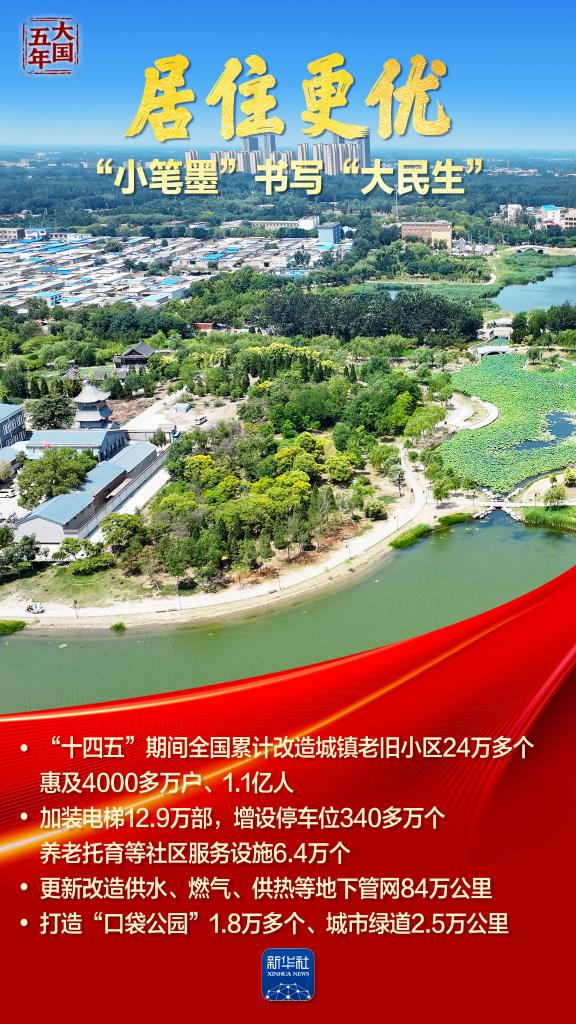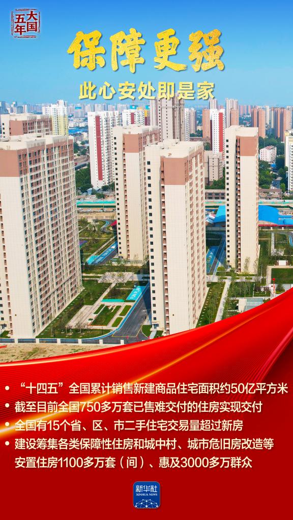 千萬套保障性住房拔地而起,托起新市民、年輕人“此心安處”的安居夢;數十萬個老舊小區煥然一新,老街坊、老鄰居原地邂逅現代生活……從推動“保交樓”到建造“好房子”,從老舊小區改造到城市環境煥新,“十四五”這五年,一幅幅“住有所居、居有所安”的民生畫卷徐徐展開,把人民群眾美好生活的“小確幸”一筆一畫寫進現實。