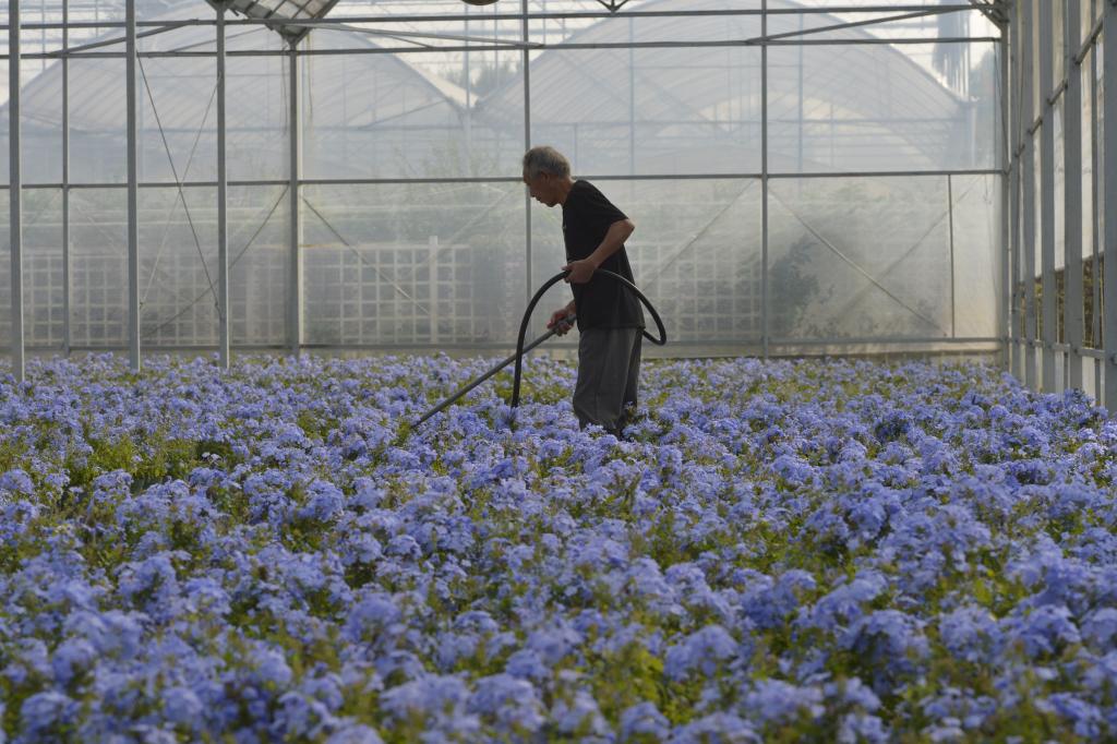 11月2日,位于海寧市鹽官鎮桃園村的“塔莎的花園”大棚里,員工正在進行花卉養護作業。新華社記者劉力航 攝