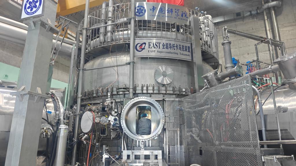 “十四五”時期,EAST先后實現穩態高約束模式等離子體運行101秒、403秒等世界紀錄。今年1月20日下午,EAST創造“億度千秒”世界紀錄,這意味著裝置以超過1億攝氏度的高溫穩定運行了1000秒,在實驗裝置上首次模擬出未來聚變堆運行所需的環境。