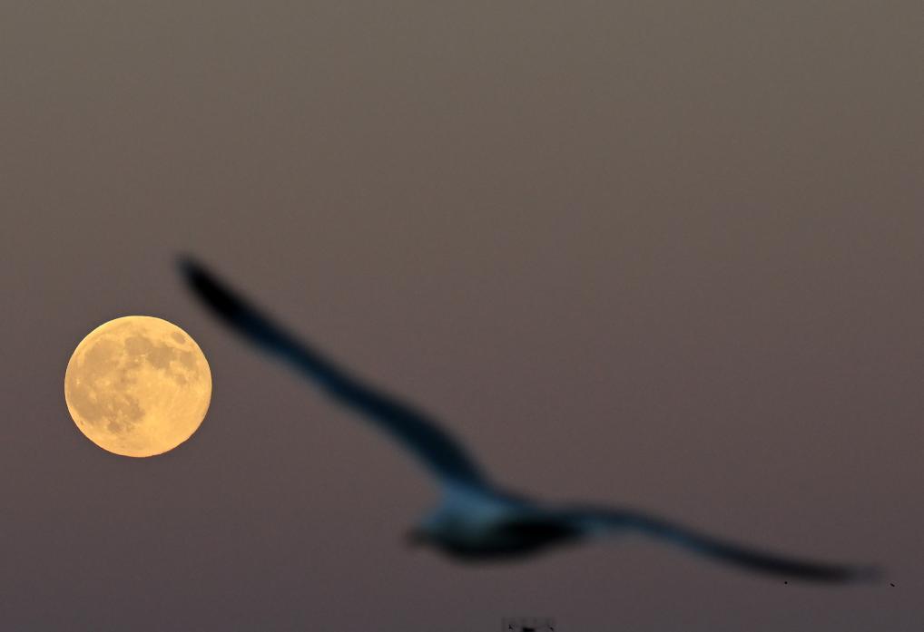 這是11月5日在意大利羅馬拍攝的“超級月亮”與海鷗。新華社發(阿爾貝托·林格利亞攝)