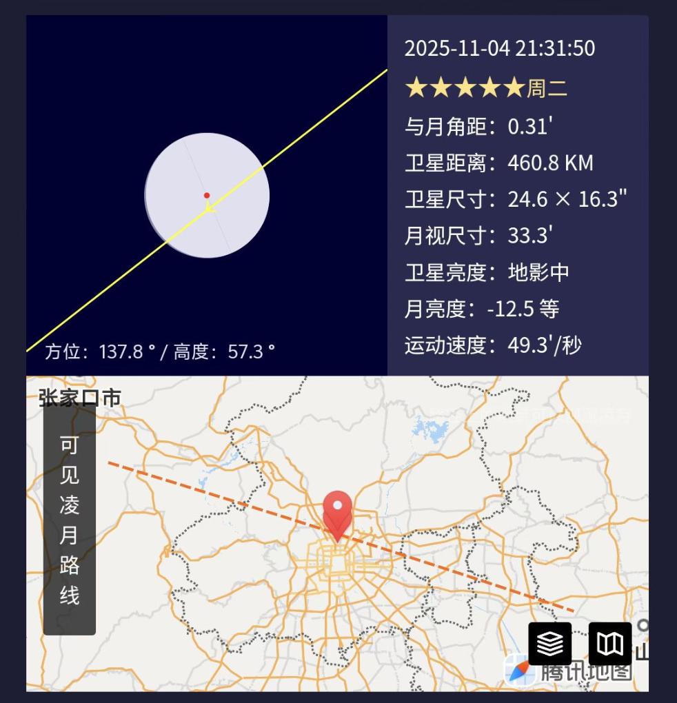 11月4日21時31分,當大多數游客還在欣賞懸于京城上空的“超級月亮”時,記者的鏡頭正嚴陣以待。根據精確測算,中國空間站將在這一時刻從月球表面掠過,整個過程僅持續不到1秒。