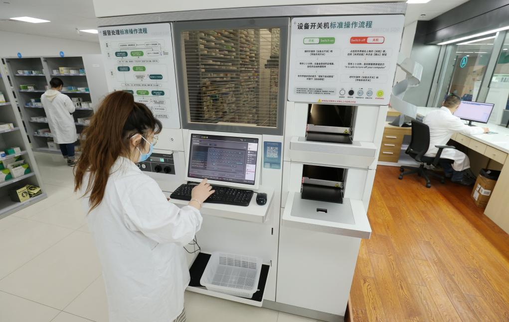 浙江德清縣第三人民醫院藥師在操作發藥機器人。新華社發(謝尚國攝)