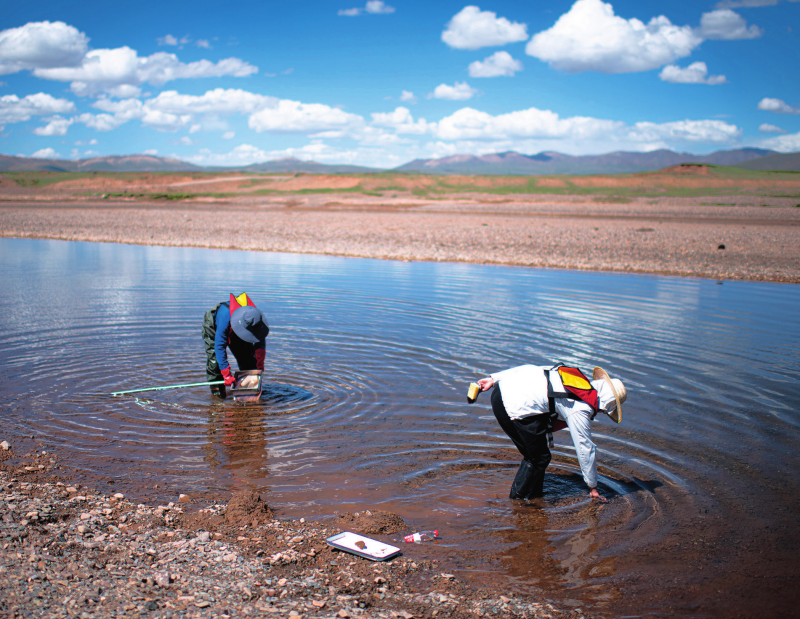 長江科學院科考隊員在長江源區采集著生藻類樣本(資料照片)肖藝九攝/本刊